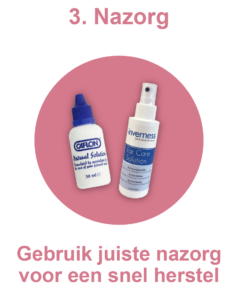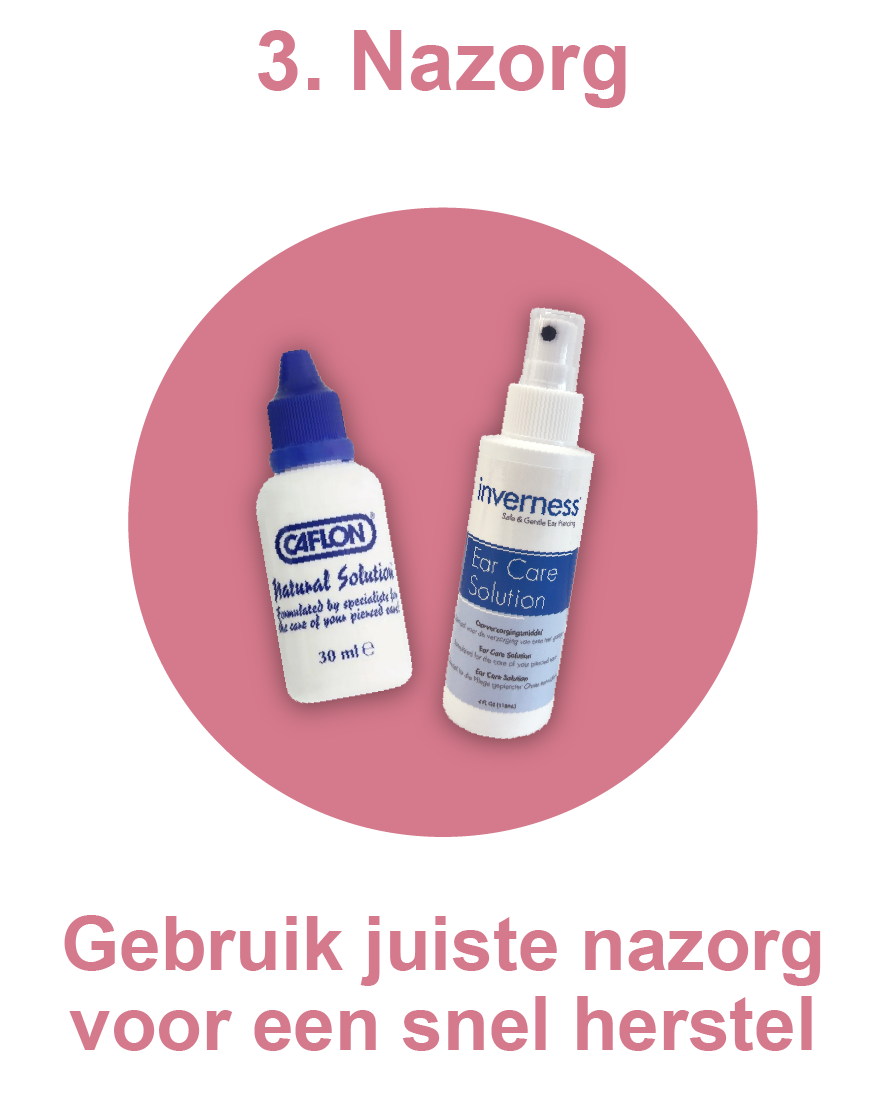 Na het prikken van het oorbelgaatje is het van groot belang, dat het oorbelgaatje goed kan genezen zonder dat er een ontsteking optreedt. Hiervoor wordt gebruik gemaakt van de speciale Inverness Ear Care Solution antiseptic spray. Deze gebruik je dagelijks 3 keer, gedurende de eerste 4 weken na het prikken van het oorbelgaatje. De Inverness Ear Care Solution antiseptic spray prikt niet, vlekt niet en droogt niet uit, waardoor het wondje sneller geneest.