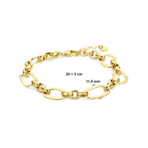 Geelgoud op 925 zilveren armband. De armband heeft een draaglengte van 20cm en een extensie van 3cm. De schakelbreedte is 11.5mm. Uitgevoerd met een karabijn sluiting.