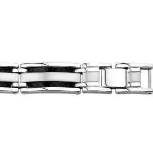 Edelstalen Schakelarmband voor Heren met Carbon Lijnen | Lengte 20 + 2 cm
