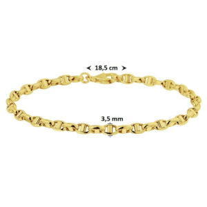 Geelgouden armband met een lengte van 18.5cm en 3.5mm breed. De armband is te combineren met bijpassende sieraden uit onze collectie.