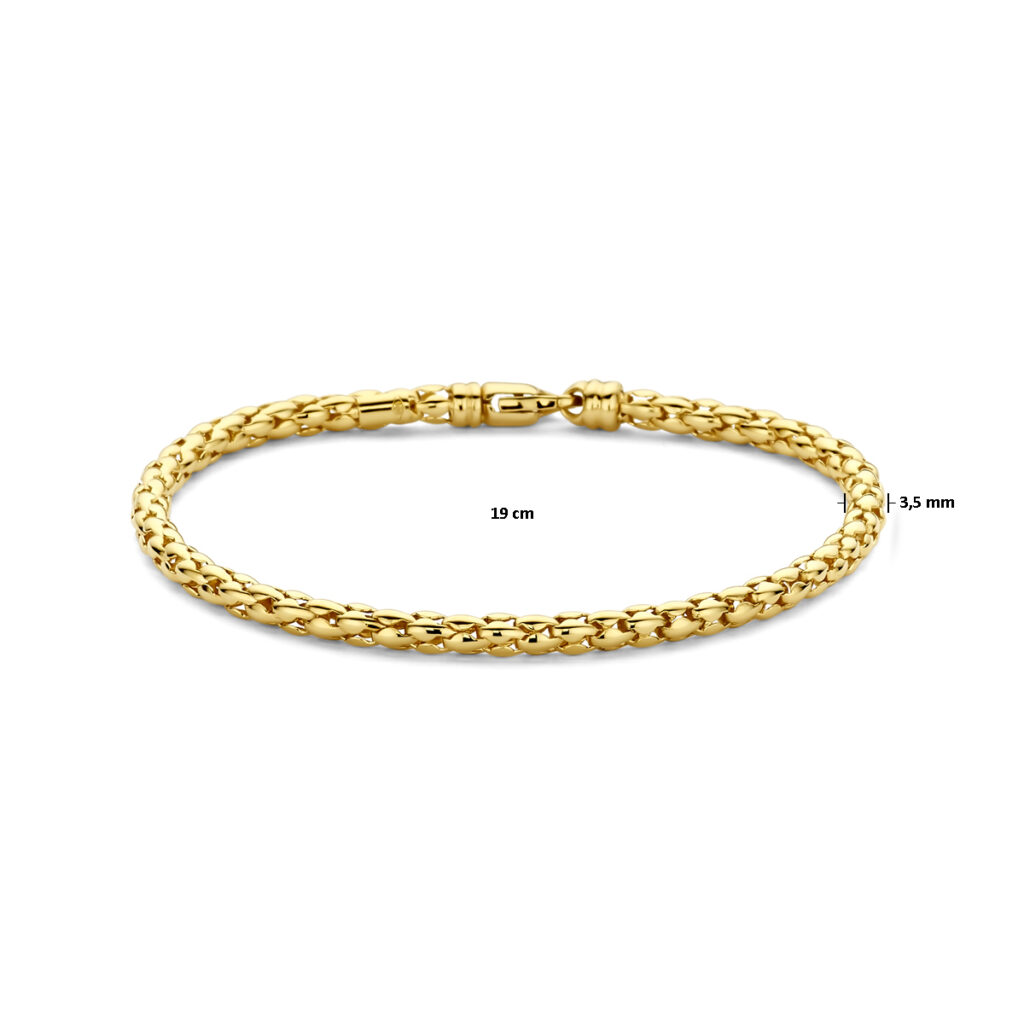 14k Geelgouden armband met een draaglengte van 19cm. De armband heeft een schakelbreedte van 3.5mm. Uitgevoerd met een karabijnslot.