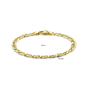 Deze goudkleurige armband is vervaardigd uit 14K geelgoud en heeft een schakelbreedte van 5,2 mm, wat zorgt voor een elegante en robuuste uitstraling. Verkrijgbaar in lengtes van 20 cm en 21 cm, biedt deze gouden herenarmband een perfecte pasvorm voor de moderne man. Met zijn gepolijste afwerking en duurzame ontwerp is deze herenarmband ideaal voor zowel dagelijks gebruik als speciale gelegenheden. Een tijdloze toevoeging aan iedere sieradencollectie.