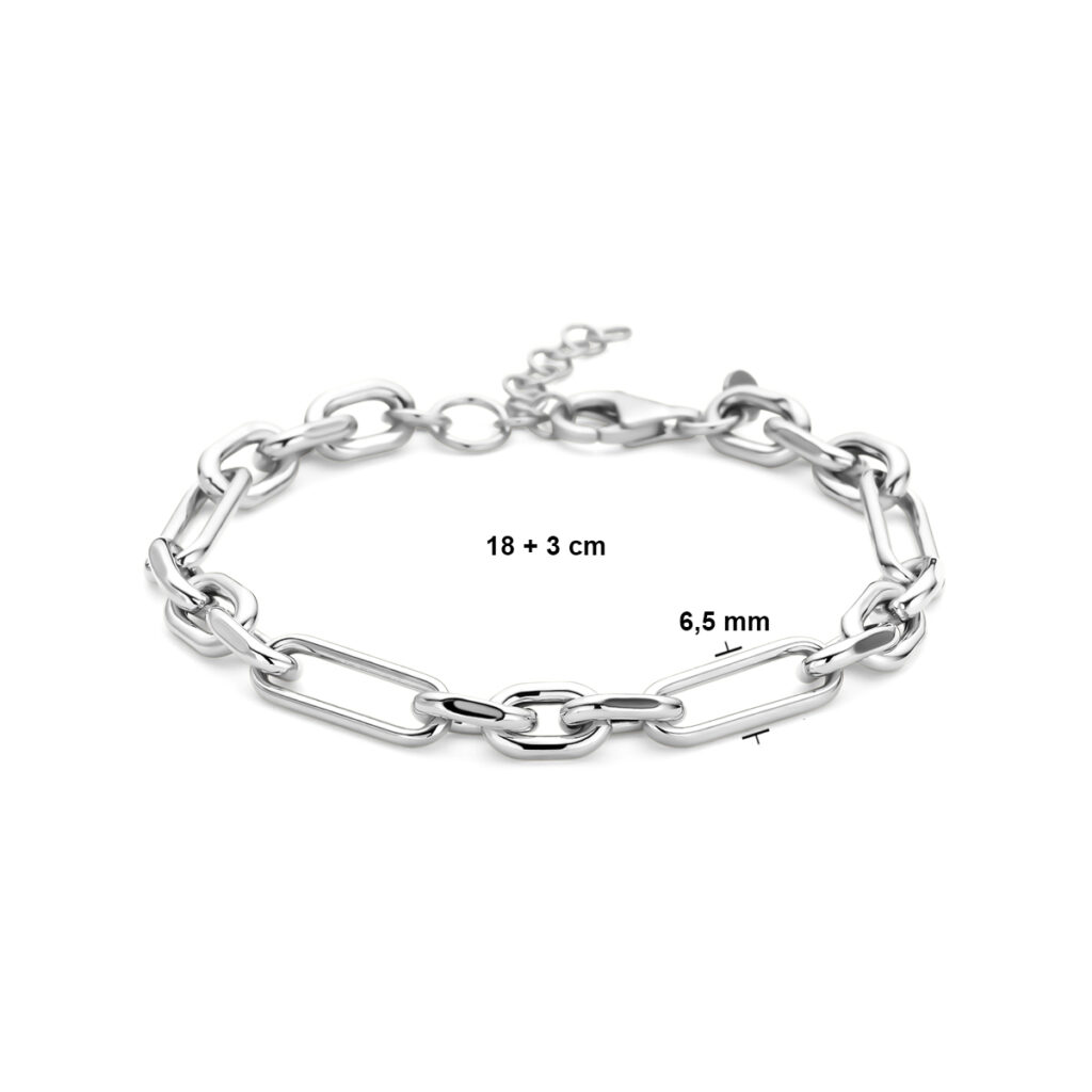 Gerhodineerd 925 zilveren anker armband. De armband heeft een draaglengte van 18mm en een extensie van 3mm. De schakelbreedte is 6.5mm. Uitgevoerd met een karabijn sluiting.