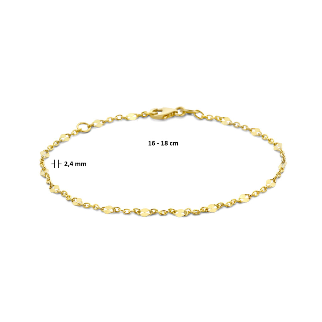 14k Geelgouden armband met een schakelbreedte van 2.4mm en een karabijn sluiting. De armband heeft draaglengtes van 16 en 18cm.