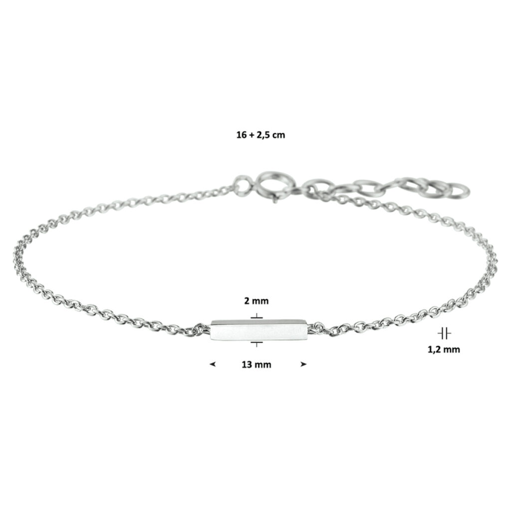 Gerhodineerd zilveren armband met een balkje. De schakelbreedte is 1.2mm.