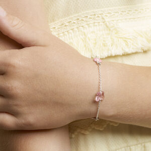 Deze Kinderarmband met Bloem en Zirkonia Bedels is volledig gemaakt van 925 sterling zilver, de allerbeste kwaliteit zilver, en bestaat uit een slanke anker schakelketting met daaraan twee bedels in de vorm van bloemen waarvan de blaadjes zijn voorzien van gekleurde roze emaille, alsook een roze bedel aan de voorzijde van de armband. Daarnaast is deze kinderarmband voorzien van een handige karabijnsluiting, waarmee u deze armband gemakkelijk om- en afdoet. Deze Kinderarmband met Bloem Bedels is speciaal voor kinderen en heeft een lengte van 15cm (13cm + 2cm). Deze armband behoort tevens tot onze huiscollectie, waardoor u verzekerd bent van de allerbeste kwaliteit tegen de scherpste prijzen!