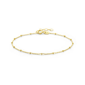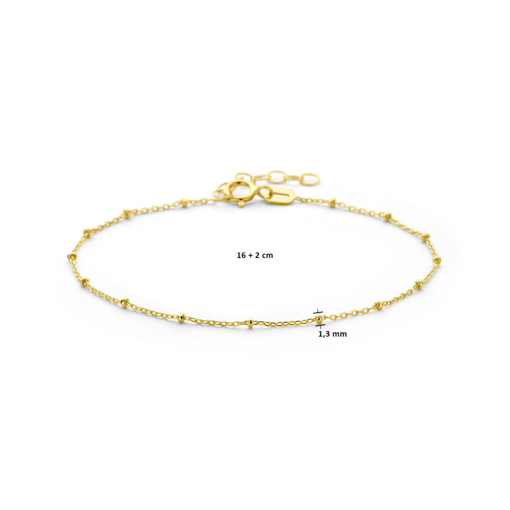 14k Geelgouden armband uitgevoerd met bolletjes met een breedte van 1.3mm. De armband heeft een draaglengte van 16cm met een extensie van 2cm.