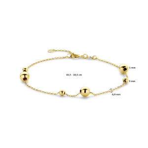 14k Geelgouden armband uitgevoerd met bolletjes. De armband heeft draaglengtes van 16.5-18.5mm.
