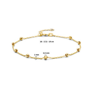 14k Geelgouden armband met een anker schakel en bolletjes van 2.5mm. De armband heeft draaglengtes van 16, 17.5 en 19cm. De schakelbreedte is 1.0mm.