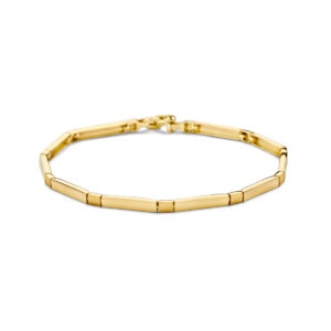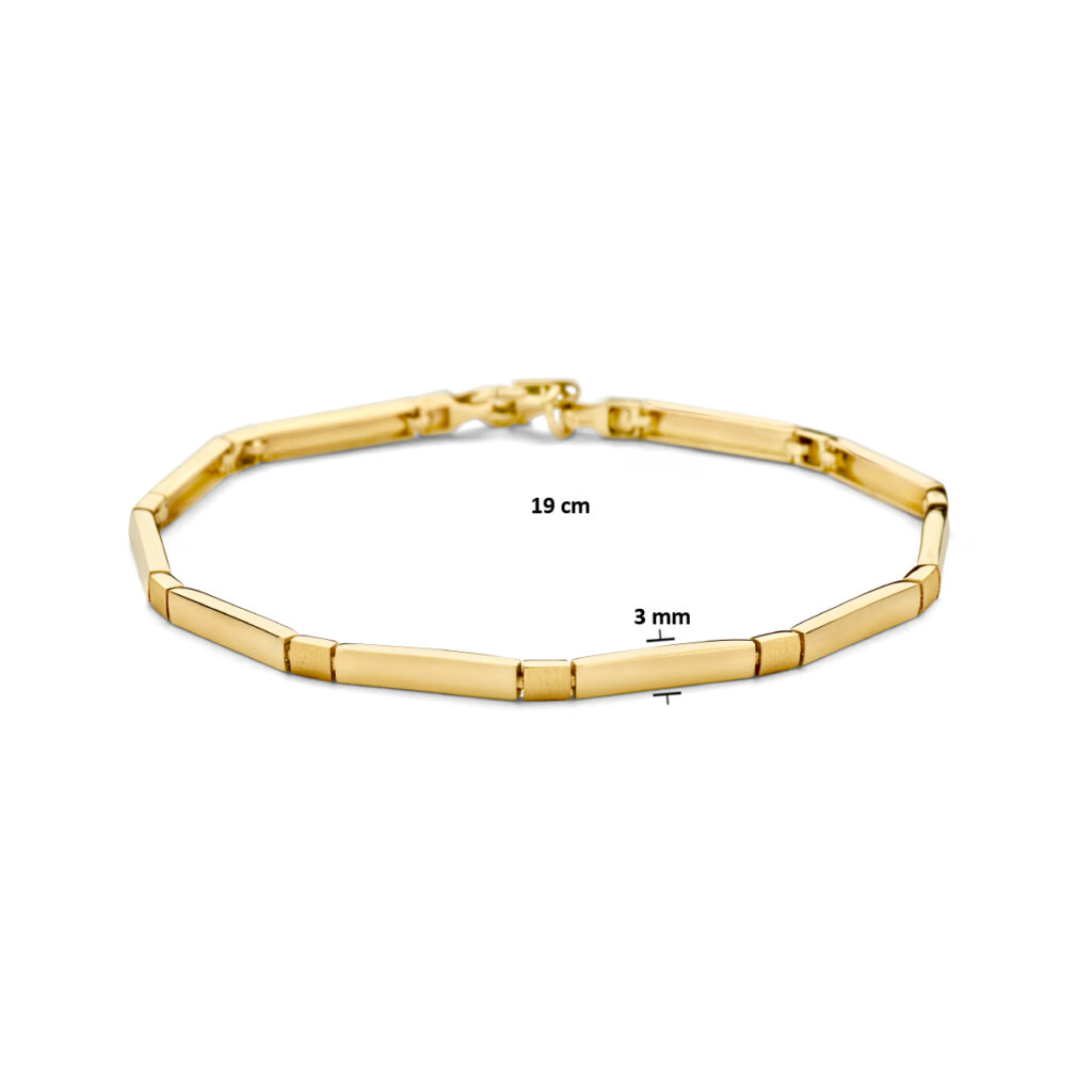 14k Geelgouden armband met een draaglengte van 19cm. De schakelbreedte is 3mm. Uitgevoerd met een karabijn sluiting.