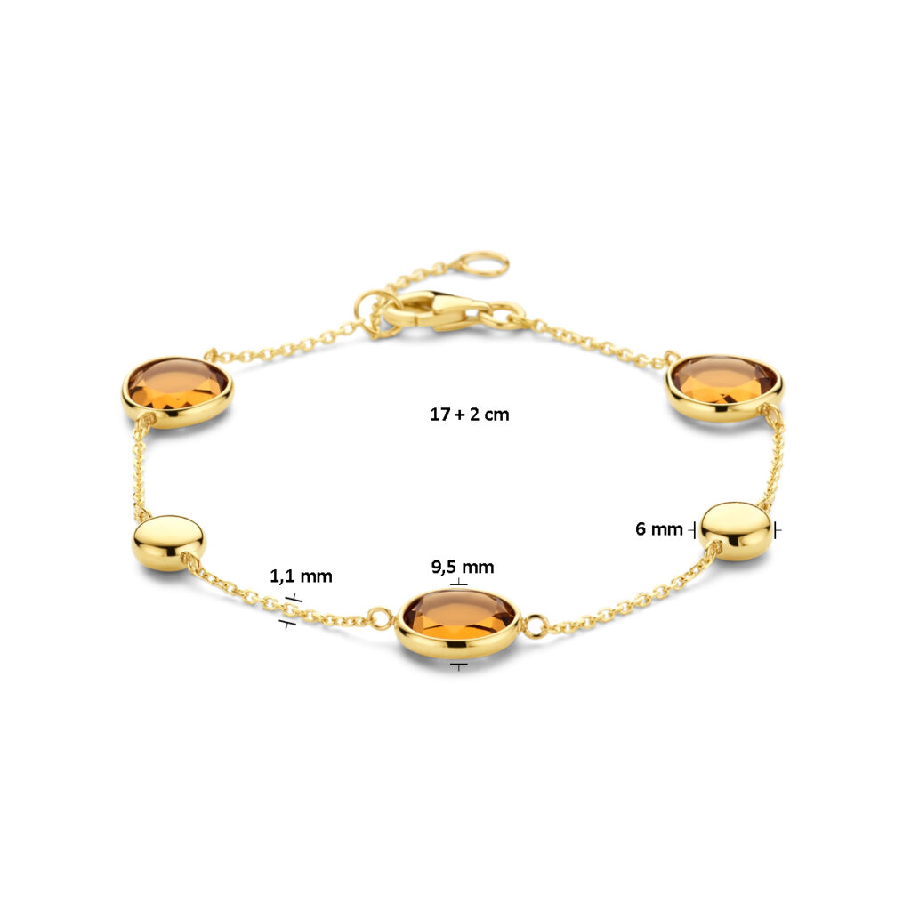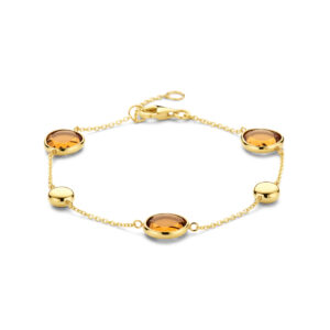 14k Geelgouden armband uitgevoerd met citrien en een karabijn sluiting. De armband heeft draaglengtes van 17 en 19cm. De schakelbreedte is 1.2mm.