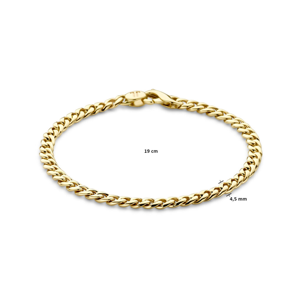14k Geelgouden armband uitgevoerd met gourmette schakel van 4.5mm. De armband heeft een draaglengte van 19cm en is uitgevoerd met karabijnsluiting.