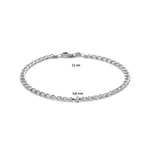Deze verfijnde zilveren herenarmband is voorzien van een stijlvolle gourmette schakel met een balkje. Gemaakt van hoogwaardig 925 zilver en met een schakelbreedte van 3,8 mm, biedt deze armband een elegante uitstraling. De draaglengte van 21 cm zorgt voor een comfortabele pasvorm. De armband is uitgerust met een stevige karabijnsluiting, waardoor deze herenarmband veilig en gemakkelijk te dragen is. Perfect voor dagelijks gebruik of als aanvulling op een nette outfit.