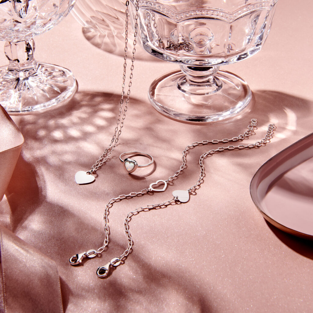 Gerhodineerd 925 zilveren uitgevoerd met een hartje en een karabijn sluiting. De schakelbreedte is 2mm en het hartje heeft een afmeting van 10x9mm.
