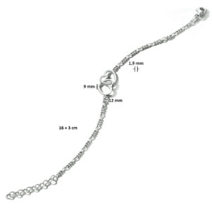 Armband Hartjes 16 + 3 Cm Zilver Gerhodineerd