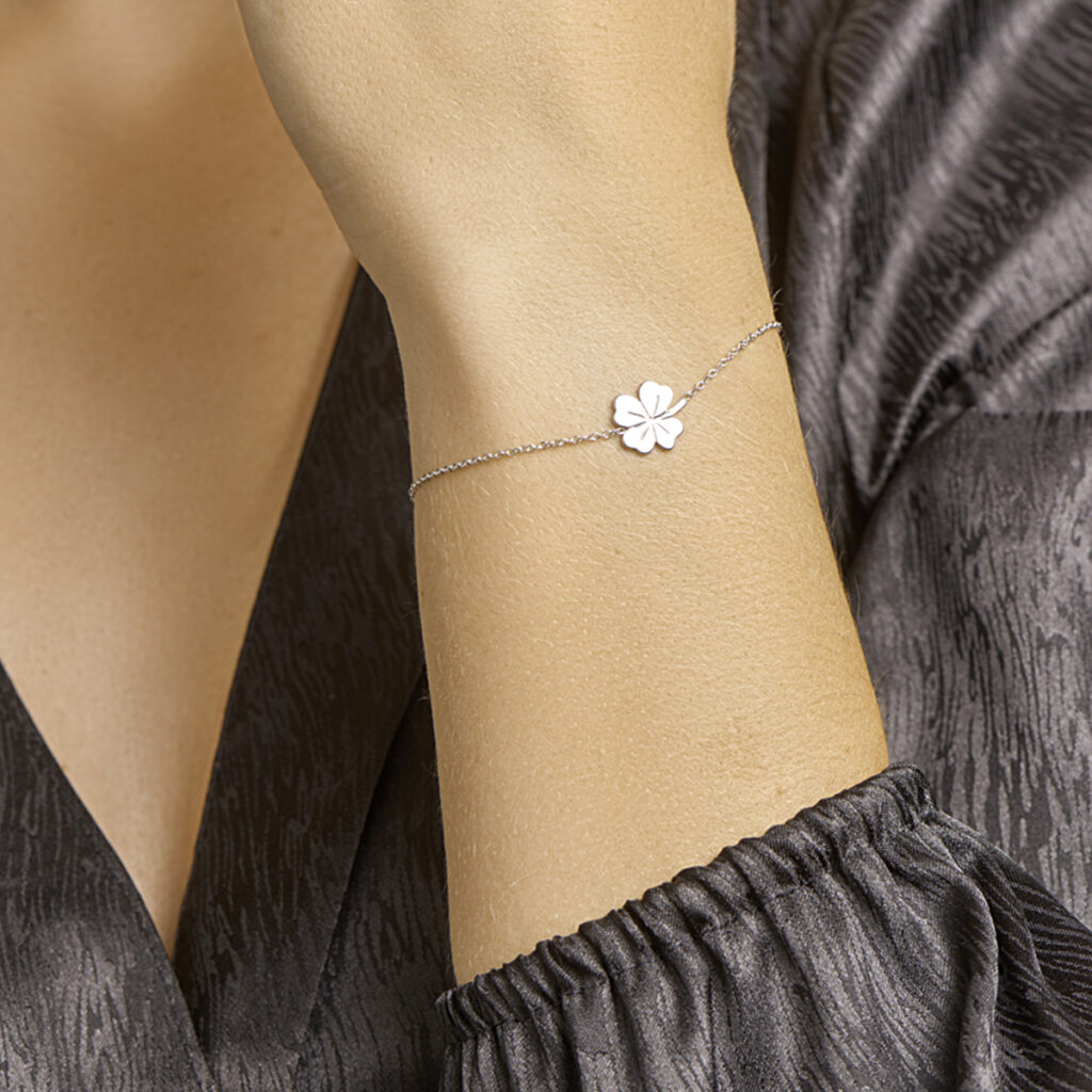 Gerhodineerd zilveren armband met een klavertje.