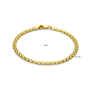 14k Geelgouden armband met een schakelbreedte van 3.5mm en een draaglengte van 18cm. Uitgevoerd met een karabijn sluiting.