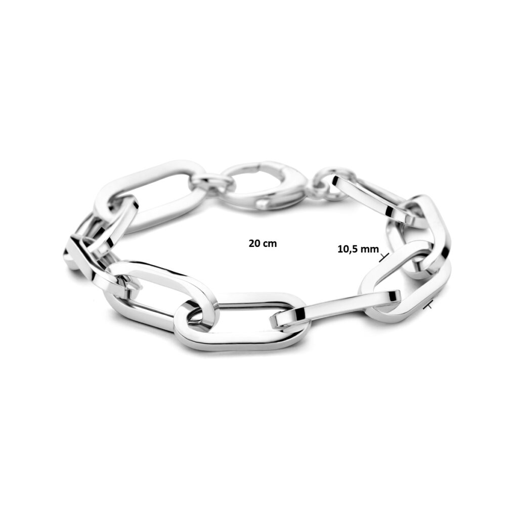 Gerhodineerd 925 zilveren armband met een schakelbreedte van 10.5mm en een draaglengte van 20cm. Uitgevoerd met een karabijn sluiting.