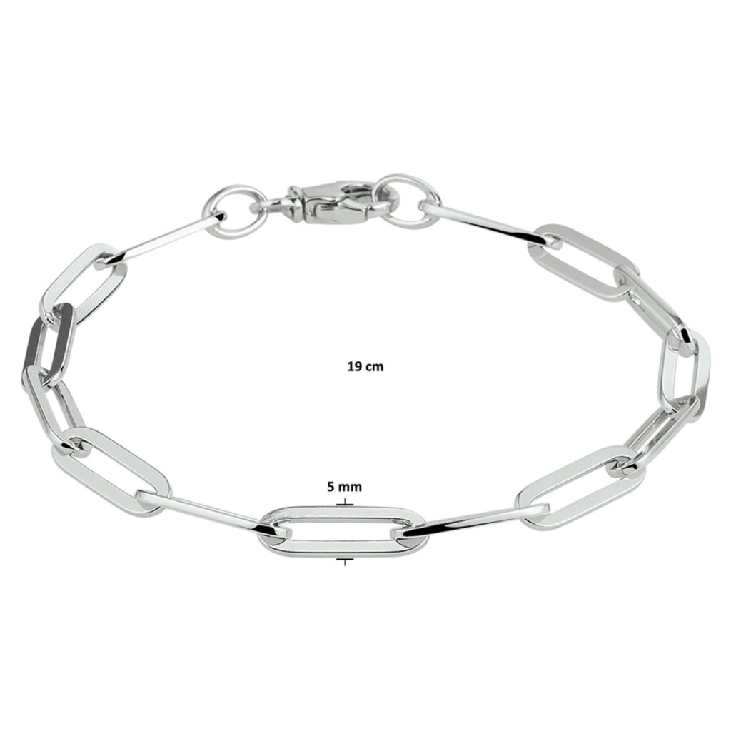 Armband Paperclip Vierkante Buis 5,0 Mm 19 Cm Zilver Gerhodineerd
