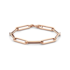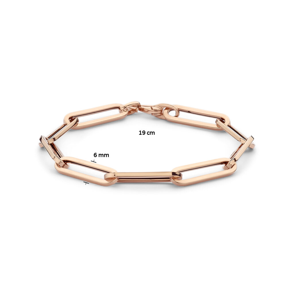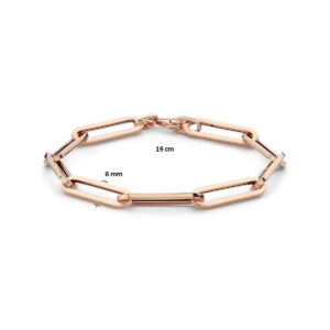 14k Rosegouden paperclip armband met een paperclip schakel. De armband heeft een draaglengte van 19cm en is uitgevoerd met karabijnsluiting. De schakelbreedte is 6mm.