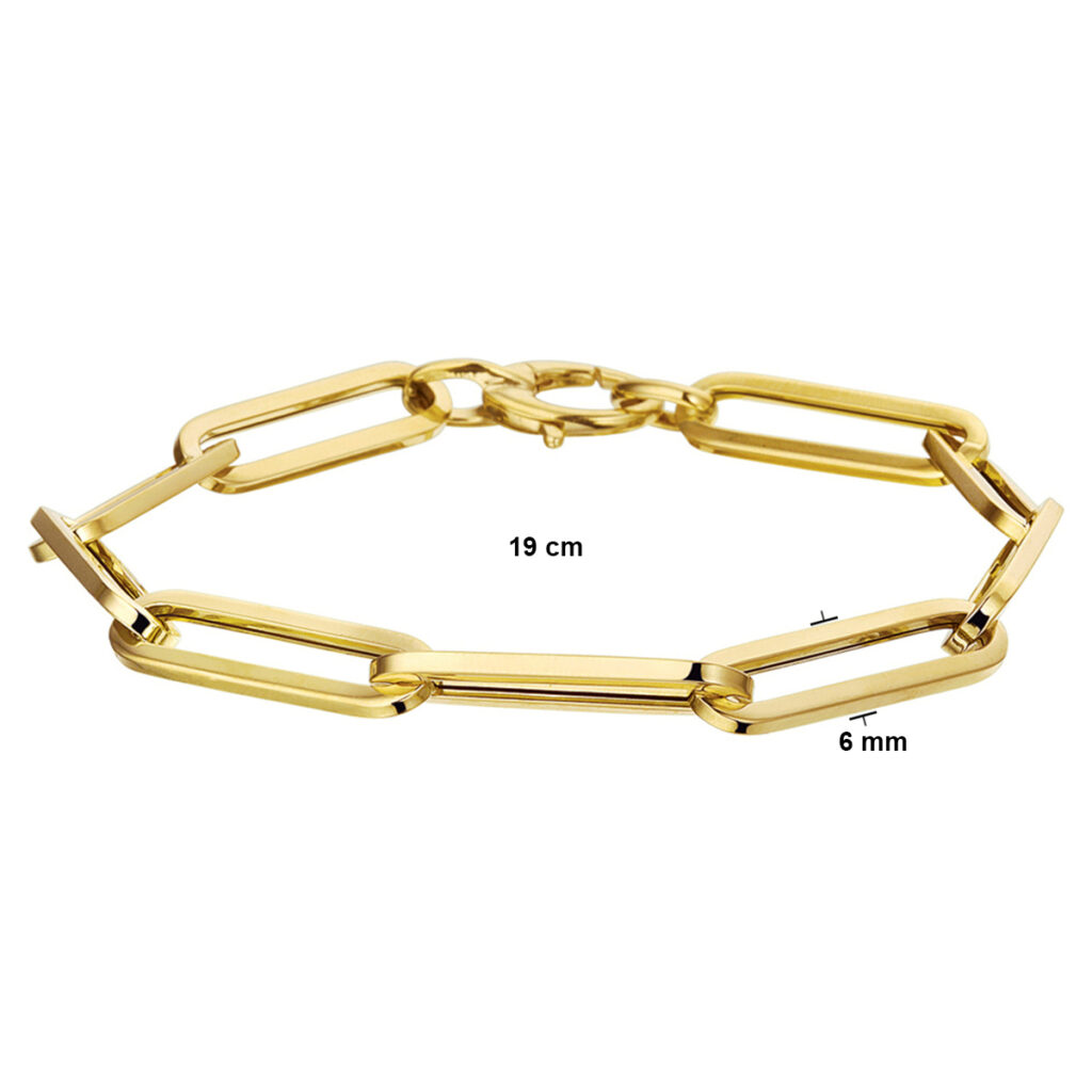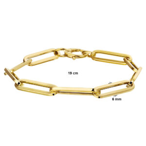 18k Geelgouden paperclip armband met een paperclip schakel. De armband heeft een draaglengte van 19cm en is uitgevoerd met karabijnsluiting. De schakelbreedte is 6mm.