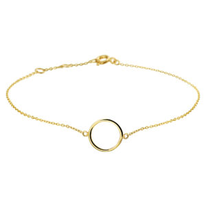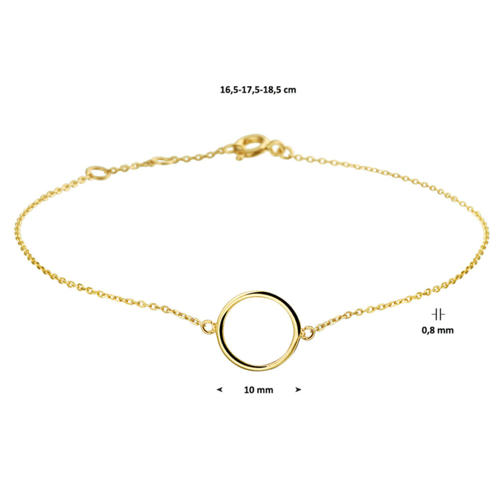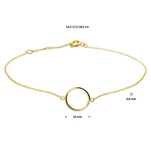 Trendy 14k geelgouden anker armband uitgevoerd met een rondje van 10mm en draaglengtes van 16.5 17.5 en 18.5 cm en een schakelbreedte van 0.8mm. Ben je helemaal van het hier en nu mode bewust en houd van trendy sieraden dan mag deze armband niet missen in jou sieraden stash!. Tip: Combineer deze armband met bijpassende sieraden die te vinden zijn in onze collectie!.