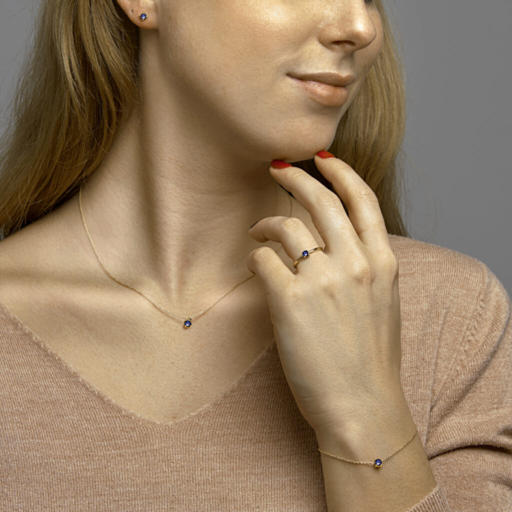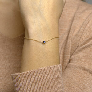 14k Geelgouden anker armband uitgevoerd met een schitterende saffier. De armband heeft draaglengtes van 15.5, 17 en 18.5cm. De schakelbreedte is 1.0mm.