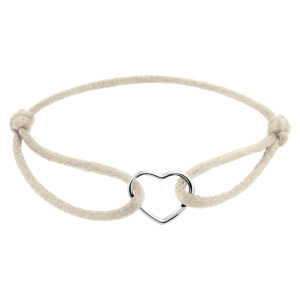 Ivoor gevlochten rubber/nylon/leren armband uitgevoerd met een gerhodineerd 925 zilveren hartje. De armband heeft draaglengtes van 13 tot 26cm. Het hartje heeft een afmeting van 12.5×15.5mm.