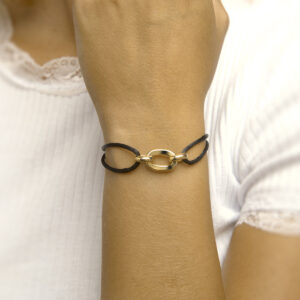 Zwart Satijnen Armbandje met Goudkleurige Schakels