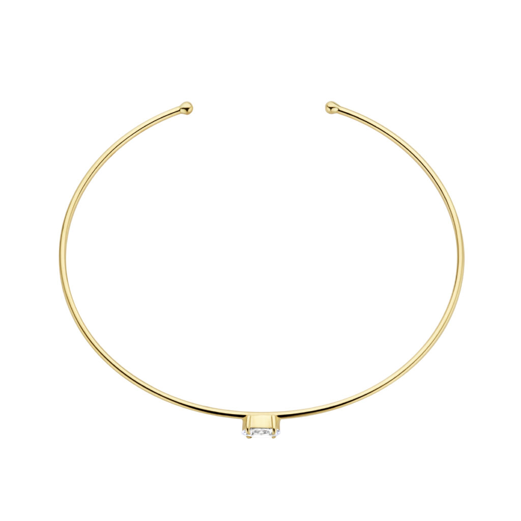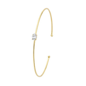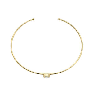 14k Geelgouden spang uitgevoerd met een schitterende zirkonia. De spang heeft een afmeting van 60×1.2mm.