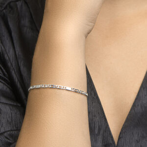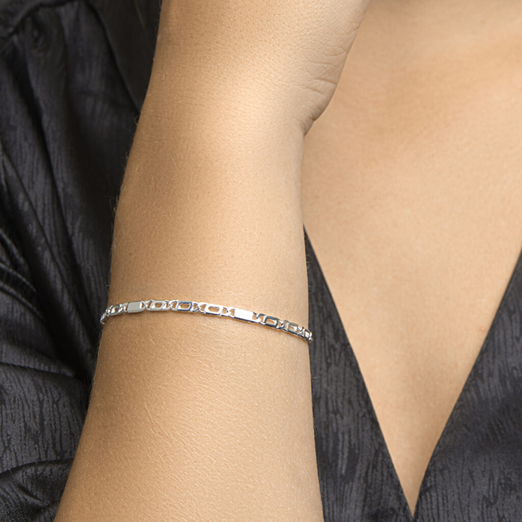 Zilveren armband met valkenoog- en tussenschakel. De schakelbreedte is 2.9mm.