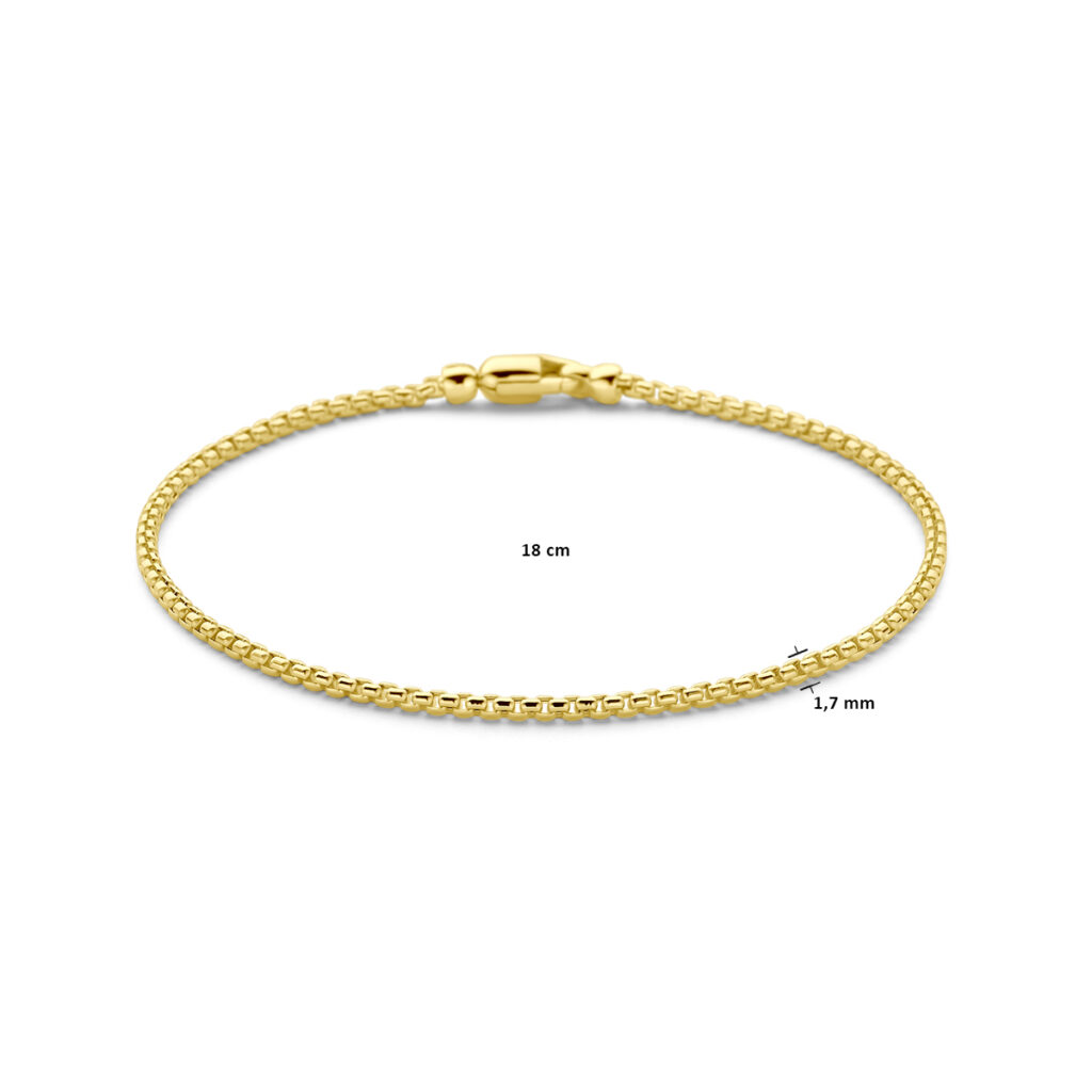 14k Geelgouden armband uitgevoerd met een venetiaanse schakel met een breedte van 1.7mm. De armband heeft een draaglengte van 18cm en een stevige karabijn sluiting.
