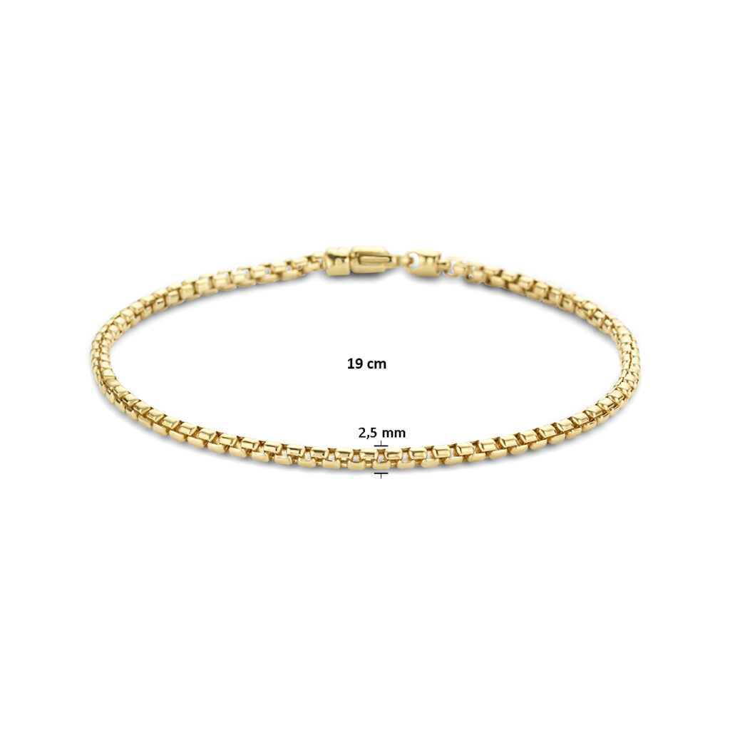 14k Geelgouden armband uitgevoerd met een venetiaanse schakel met een breedte van 2.5mm. De armband heeft een stevige karabijn sluiting.
