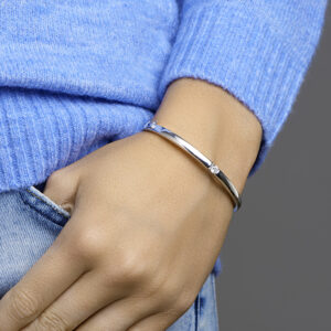 Gerhodineerd zilveren bangle uitgevoerd met een chaton met een schitterende zirkonia. Tip: Combineer deze bangle met bijpassende sieraden uit onze collectie of vanuit je eigen stash en creeer zo elke keer weer een nieuwe look.
