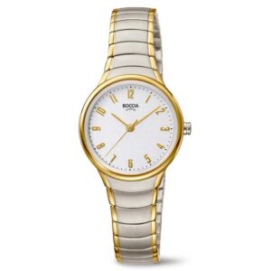 Dit dameshorloge van Boccia Titanium heeft een nette uitstraling. De bi-color titanium horlogekast zorgt voor een stijlvolle look en de witte wijzerplaat maakt het horloge klassiek. Het horloge heeft een ronde kast met een diameter van 28mm, een mineraalglas, en is 3ATM. Combineer dit prachtige exemplaar met de andere sieraden van Boccia Titanium voor een complete look. Aan de titanium kast zit een bi-color schakel band.