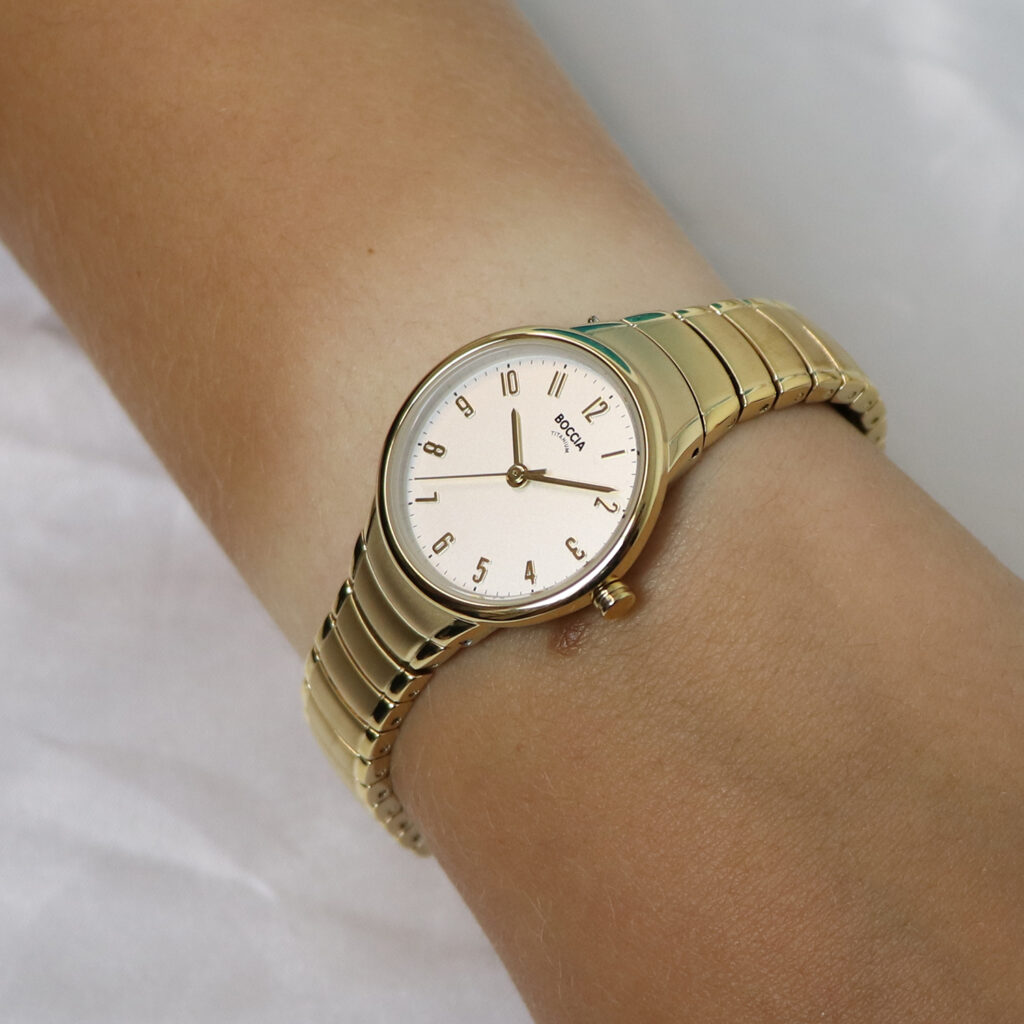 De 3319-03 is een trendy horloge van Boccia Titanium! De witte wijzerplaat in combinatie met de gouden horlogekast zorgt voor een klassieke look. De 3319-03 heeft een kastdiameter van 40mm en bestaat uit mineraalglas. De waterdichtheid is 3ATM. Combineer dit prachtige exemplaar met de andere sieraden van Boccia Titanium voor een complete look.