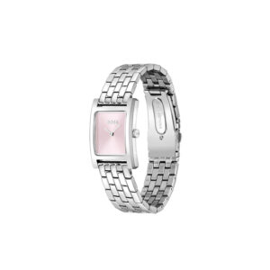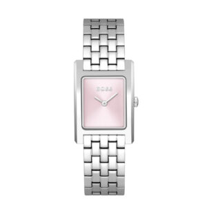 Dit BOSS horloge uit de LUCY serie met artikelnr: HB1502743 heeft een chique look. Zeer geschikt voor de moderne stijlvolle vrouw van nu. Het stalen dameshorloge valt op door zijn rechthoekige horlogekast met een roze wijzerplaat met minimalistische wijzers. Aan de kast zit een stalen schakelband met druksluiting. De kast van het horloge heeft een afmeting van 22×24,5mm met mineraalglas en is 3ATM.