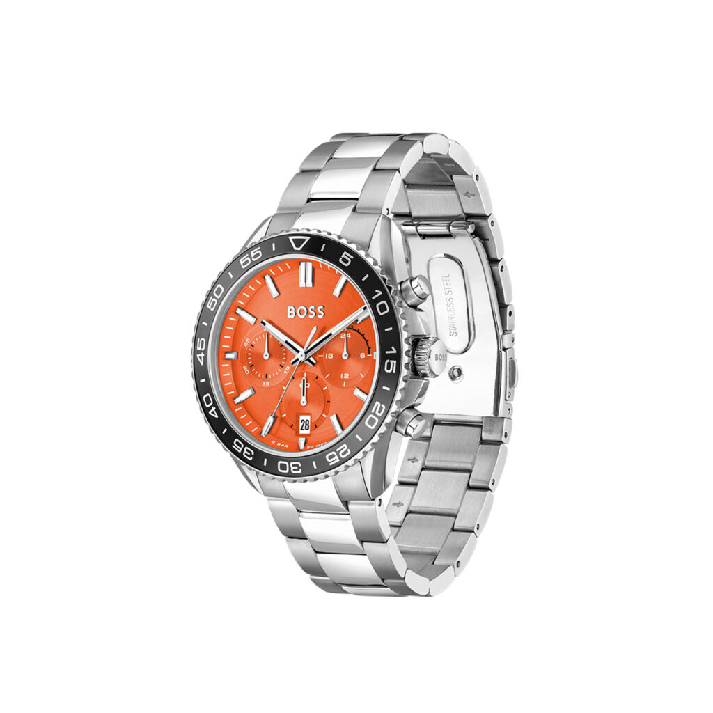 Dit BOSS horloge uit de RUNNER serie met artikelnr: HB1514162 heeft een stoere sportieve uitstraling. Zeer geschikt voor de moderne stijlvolle man van nu. Het stalen herenhorloge valt op door zijn stalen horlogekast met een zwarte bezel en een oranje wijzerplaat met een chronograaf en datum. Opvallend zijn de wijzers die met lumibrite de tijd aangeven. Aan de kast zit een stalen schakelband met vouwsluiting. De kast van het horloge heeft een doorsnee van 43mm met mineraalglas en is 5ATM.