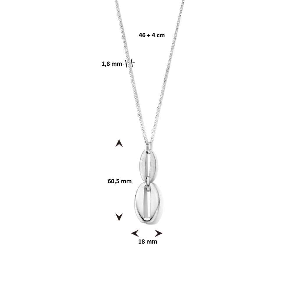 Gerhodineerd 925 zilveren collier uitgevoerd met een karabijn sluiting. Het collier heeft een draaglengte van 46cm met een extensie van 4cm. De schakelbreedte is 1.8mm.