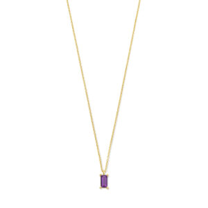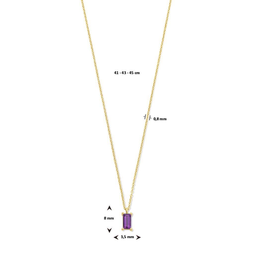 14k Geelgouden collier uitgevoerd met amethist. Het collier heeft draaglengtes van 41, 43 en 45cm. De schakelbreedte is 0.8mm. Uitgevoerd met een karabijn sluiting.