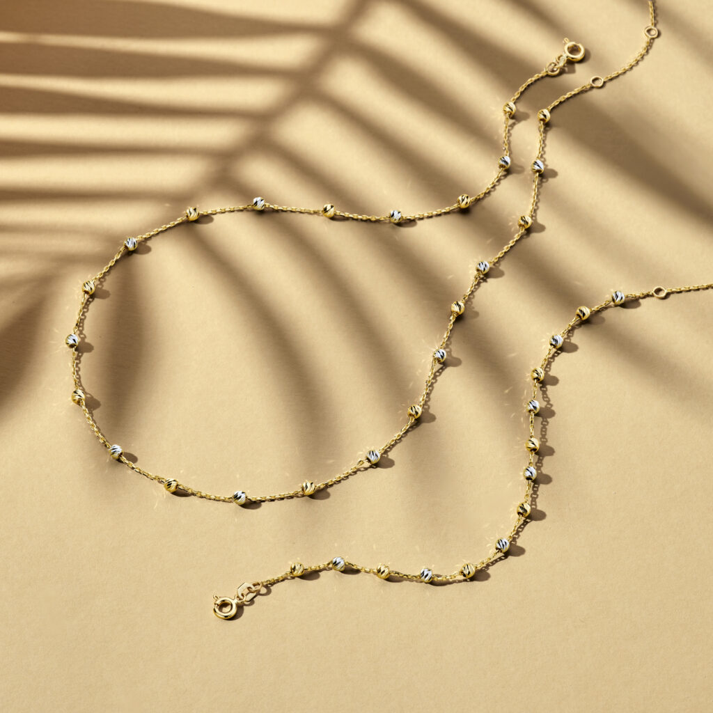 Collier Bolletjes Gediamanteerd 3,0 Mm 40 – 42 – 44 Cm 14K Bicolor Goud Geel/Wit