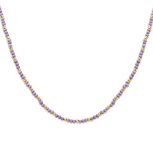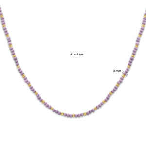 Geelgoud op 925 zilveren collier uitgevoerd met violet glas en een karabijn sluiting. Het collier heeft een draaglengte van 41cm en een extensie van 4cm. Geen garantie op plating.