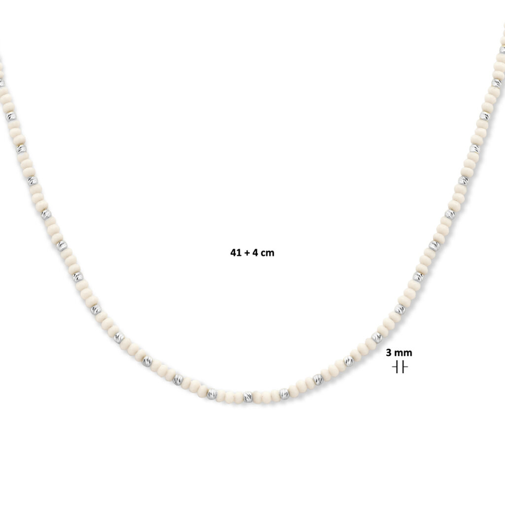 collier bolletjes gediamanteerd en wit glas 3,0 mm 41 + 4 cm