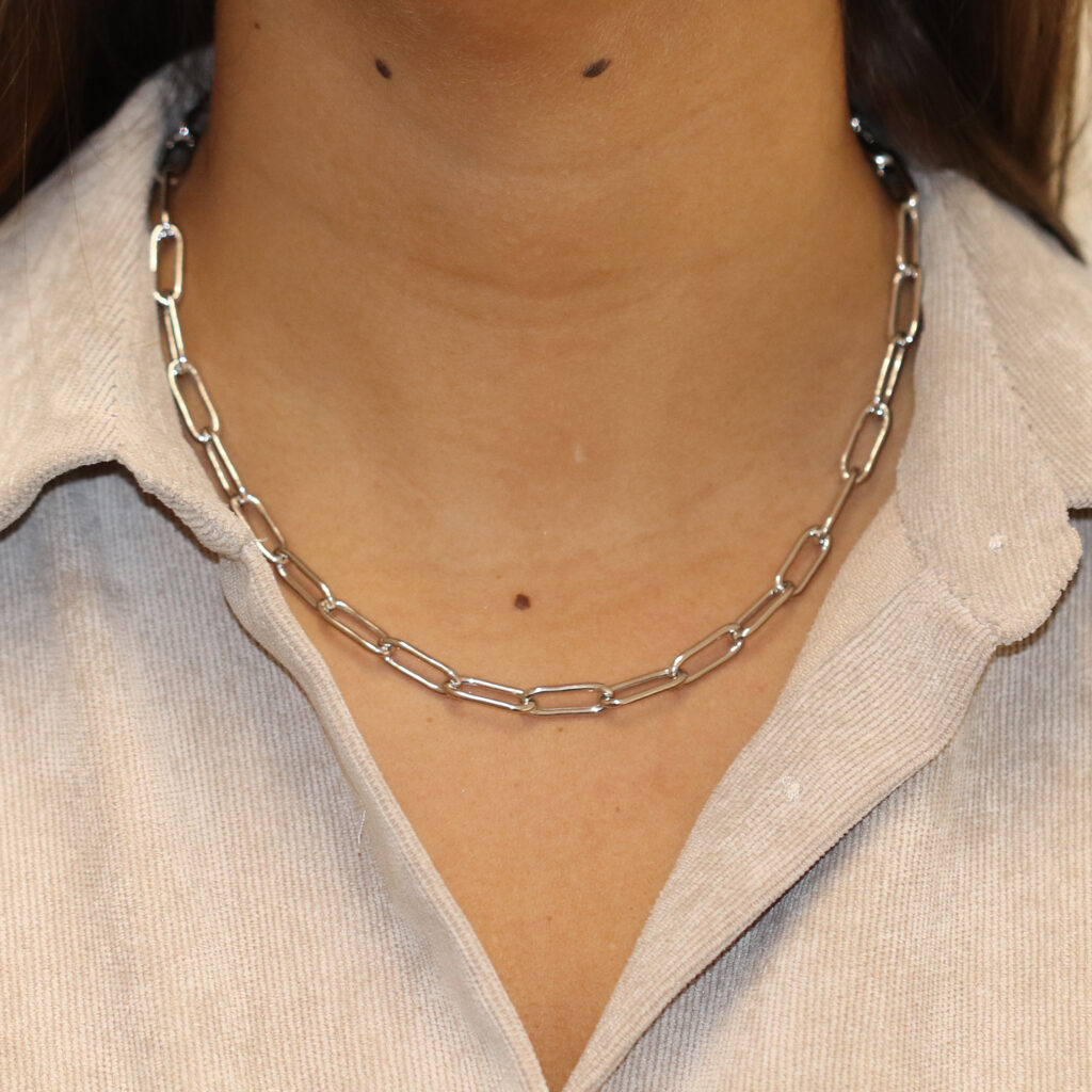 Een schakelcollier is een sieraad die goed gecombineerd kan worden met andere colliers. Dit tijdloze collier van Glow is gemaakt van 925 sterling zilver en heeft een breedte van 6mm.