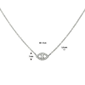 Gerhodineerd zilveren 1.4mm anker collier met een lengte van 40cm en een extensie van 4cm. Het collier is uitgevoerd met een oog belegd met briljant geslepen zirkonia in een rijzetting van 7×13.5mm. Het collier is te combineren met bijpassende sieraden uit onze collectie.
