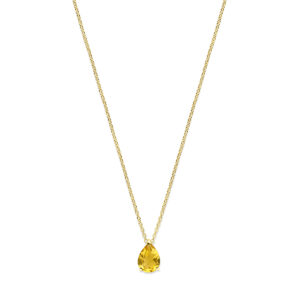 14k Geelgouden collier uitgevoerd met citrien en een karabijn sluiting. Het collier heeft draaglengte van 42 en 44cm. De schakelbreedte is 1.1mm.