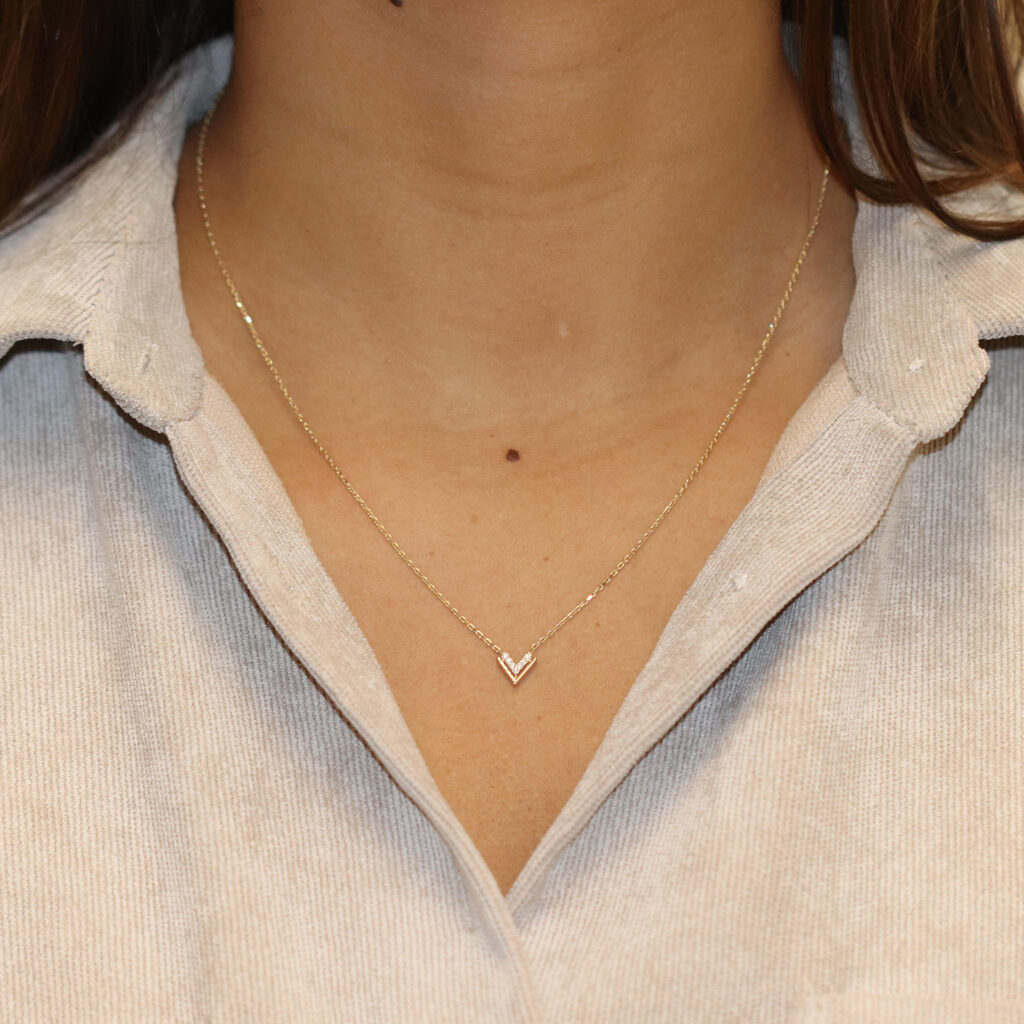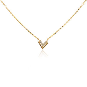 Dit collier met dubbele v van Glow is een tijdloos item voor dames! Het collier is gemaakt van 14 karaat goud en heeft een totale lengte van 45cm. De achterste v is gezet met sprankelende zirkonia’s. Met welke andere sieraden combineer jij dit collier?