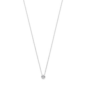 14k Witgouden collier uitgevoerd met diamant. Het collier heeft draaglengtes van 42 en 45 cm. De schakelbreedte is 0.6mm.