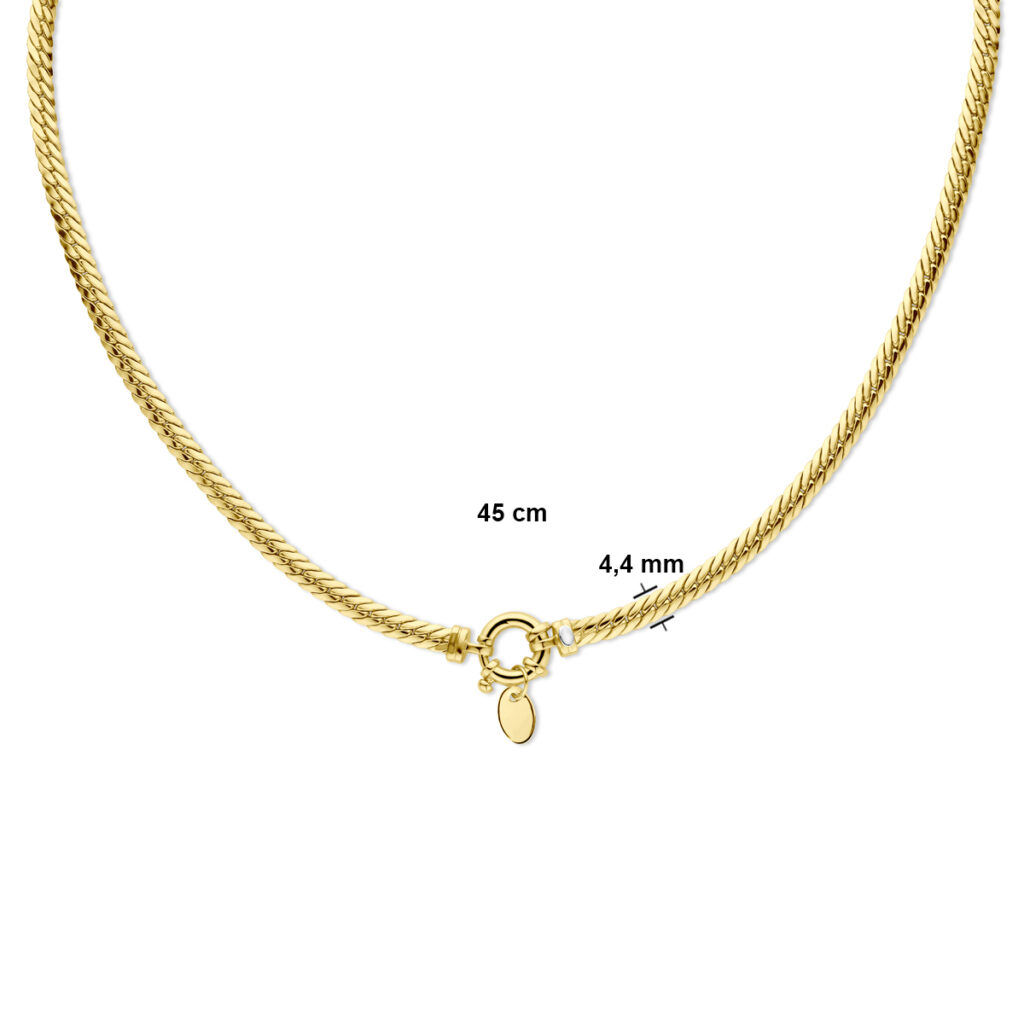 Geelgouden collier met een zilveren kern. De schakelbreedte is 4.4mm.