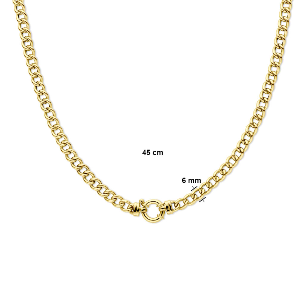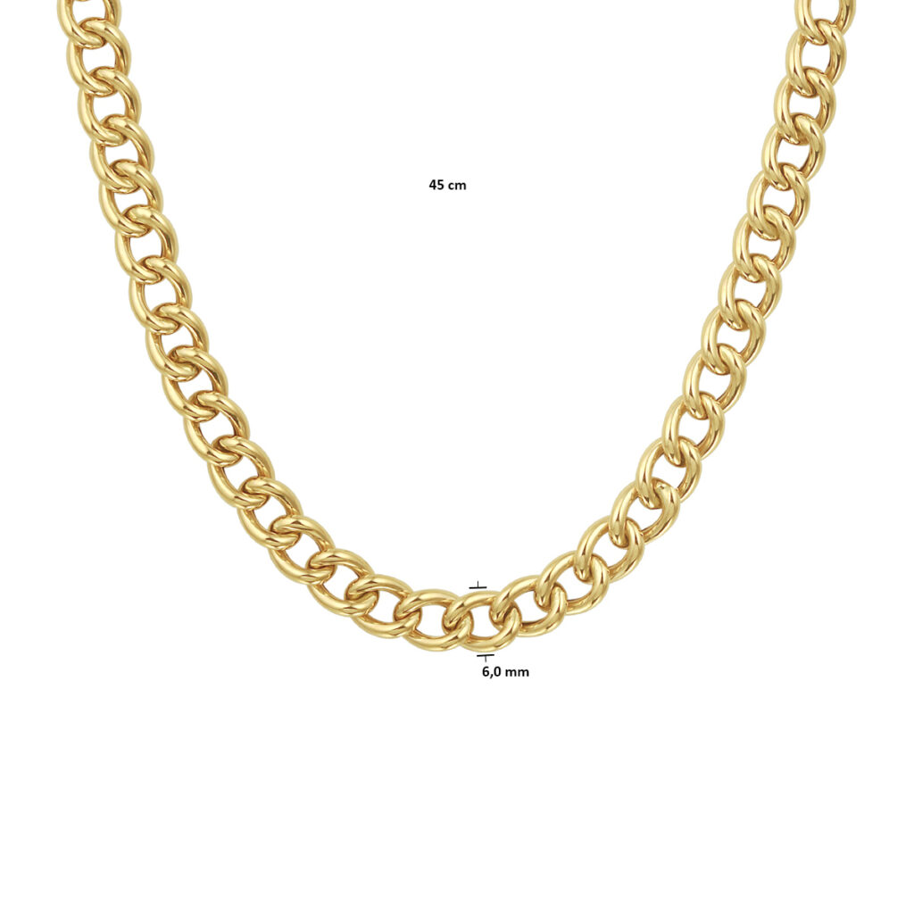 14k Geelgouden gourmet collier met een schakelbreedte van 6mm. Het collier heeft een draaglengte van 45cm en is uitgevoerd met een groot springslot. De schakelbreedte is 6.0mm.